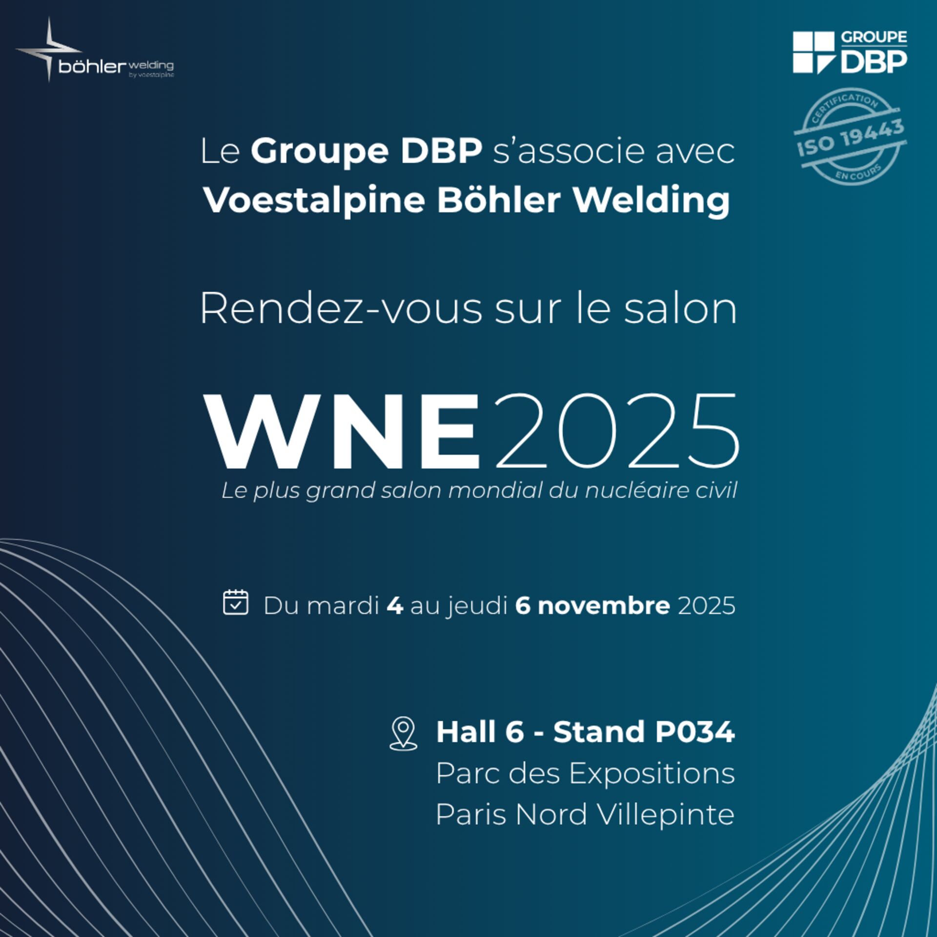Le Groupe DBP est heureux d’annoncer sa participation au World Nuclear Exhibition (WNE), le rendez-vous international incontournable de la filière nucléaire, qui se tiendra du 4 au 6 novembre 2025 au Parc des Expositions de Paris Nord Villepinte.