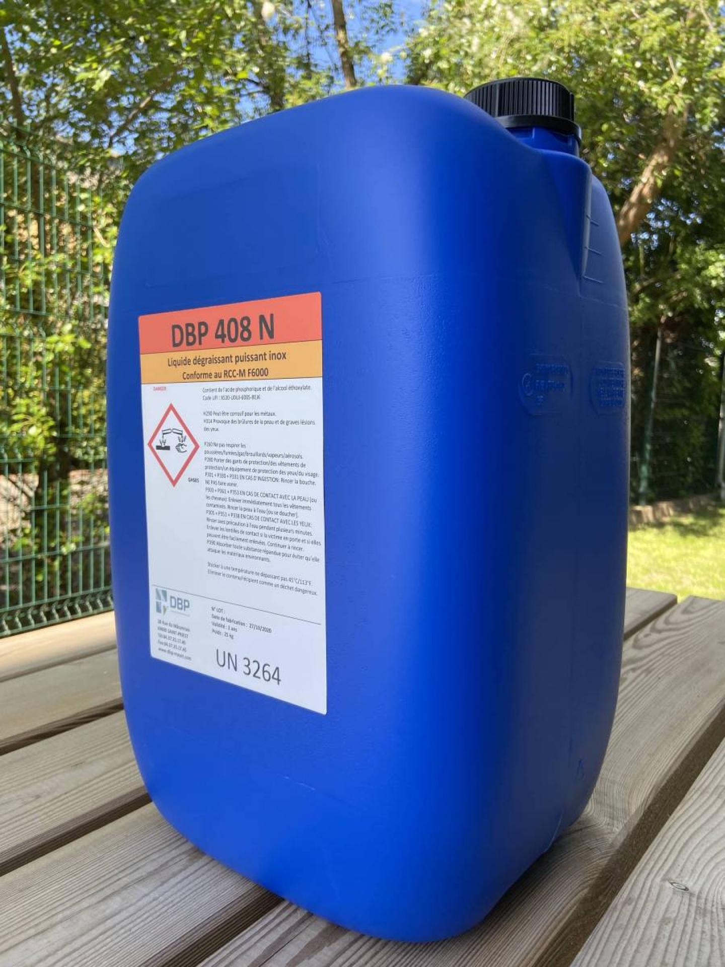 Le DBP 408 N permet l'élimination des salissures, impuretés et corps gras des surfaces traitées en acier inoxydable austénitique, austéno-ferritique (Uranus B6 – 45 – 45N- 52 N+) et alliage de Nickel (Inconel, Incoloy , Hastelloy,etc...)