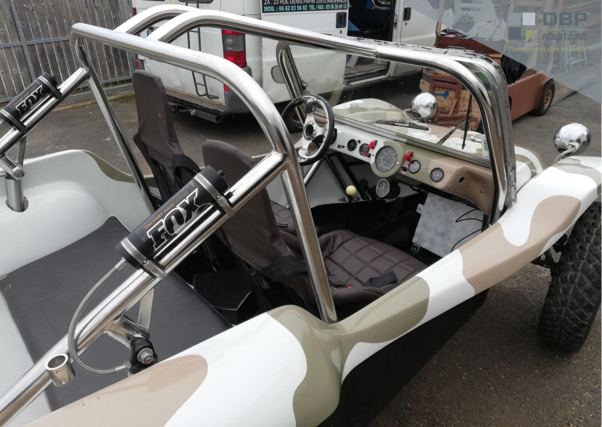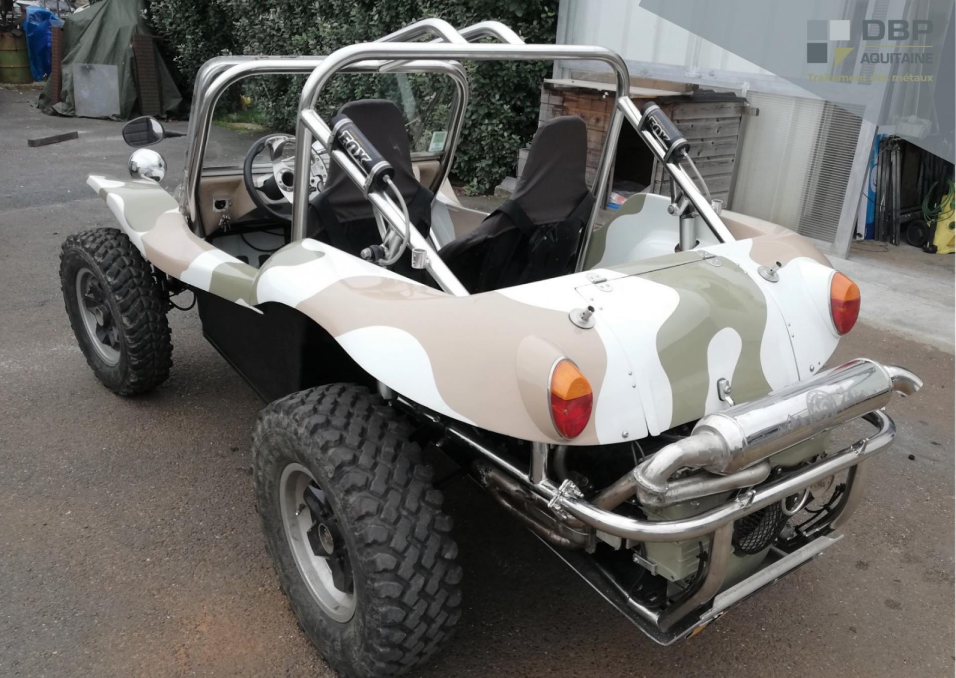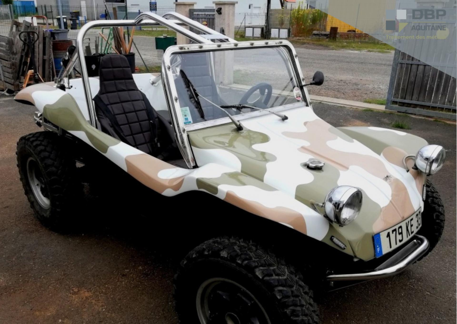 Au sein de nos ateliers de Le Barp (33), nos équipes de DBP Aquitaine ont reçu le châssis en acier d'un Buggy floqué militaire.